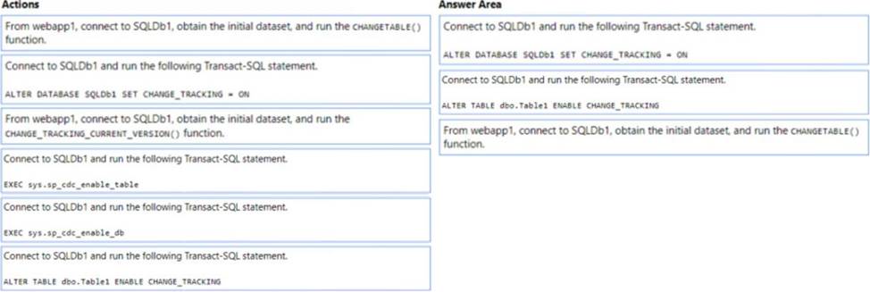 You plan to deploy an Azure web app named webapp1 that will export rows in Table1 that have changed.