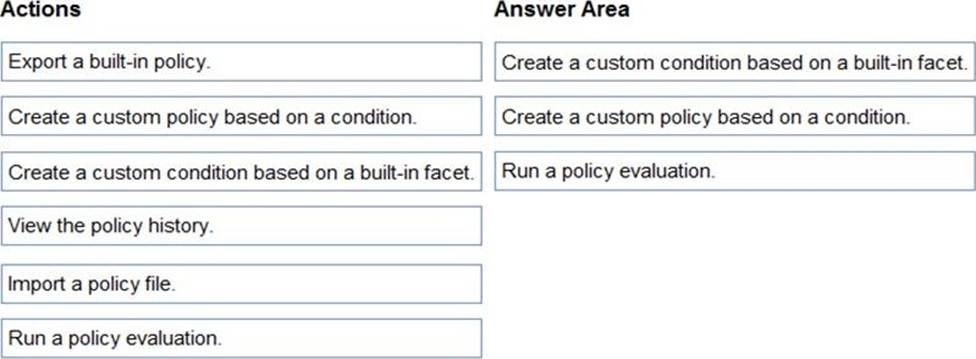 Which three actions should you perform in sequence? To answer, move the appropriate actions from the list of actions to the answer area and arrange them in the correct order.