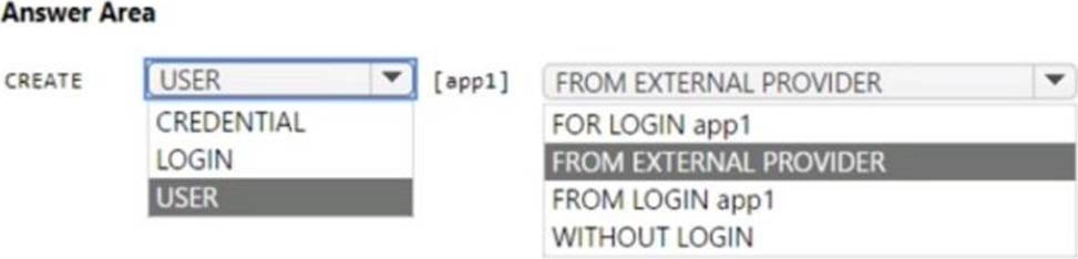 How should you complete the Transact-SQL statement? To answer, select the appropriate options in the answer area. NOTE: Each correct selection is worth one point.