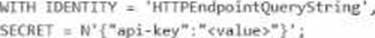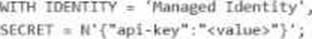 E uses an invalid identity value for this scenario. The accepted credential identities for external REST endpoint calls include HTTPEndpointHeaders, HTTPEndpointQueryString, Managed Identity, and Shared Access Signature.