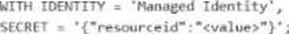 SECRET = ‘{"resourceid":"https://cognitiveservices.azure.com"}’;