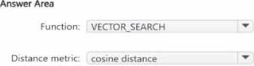 The correct function is VECTOR_SEARCH because the requirement is to perform approximate nearest neighbor (ANN) queries. Microsoft’s SQL documentation states that VECTOR_SEARCH is the function used for vector similarity search, and that an ANN index is used only with VECTOR_SEARCH when a compatible vector index exists on the target column. By contrast, VECTOR_DISTANCE calculates an exact distance and does not use a vector index for ANN retrieval.