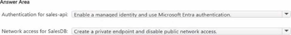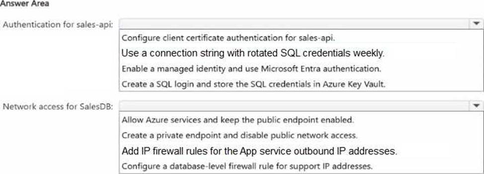 You have an Azure subscription. The subscription contains an Azure SQL database named SalesDB and an Azure App Service app named sales-api. sales-api uses virtual network integration to a subnet named vnet-prod/subnet-app and reads from SalesDB