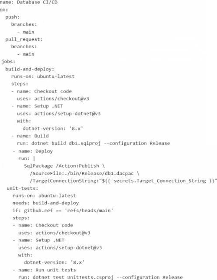 You have an SDK-style SQL database project stored in a Git repository. The project targets an Azure SQL database.