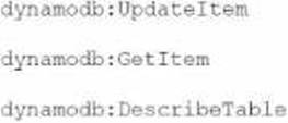 UpdateItem C Required to modify attributes or insert new item GetItem C Required to check existence or read data DescribeTable C Optional, but not harmful BEST FIT C Matches the update-or-create logic.