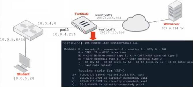 - B . The first reply packet for Student failed the RPF check. This issue can be resolved by adding a static route to 10.0.4.0/24 through wan1.