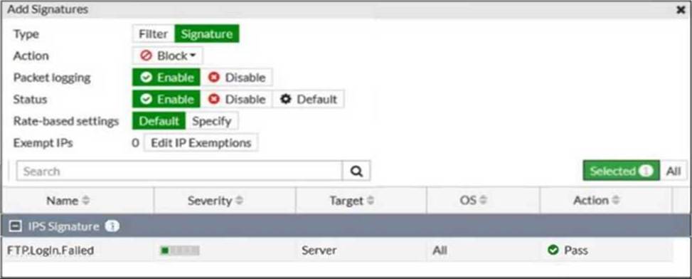 Review the intrusion prevention system (IPS) profile signature settings shown in the exhibit.