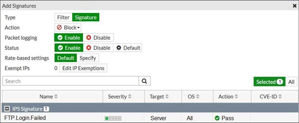 Which statement is correct in adding the FTP .Login.Failed signature to the IPS sensor profile?