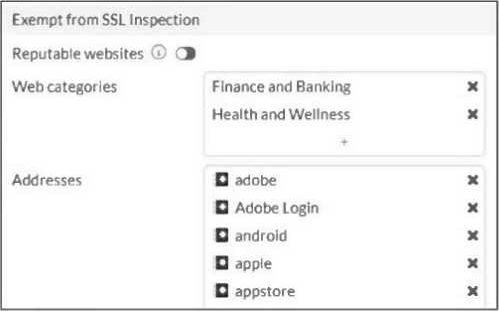 Legal regulations require exemption of certain categories to protect user privacy and sensitive information, so these web categories are excluded from SSL inspection.