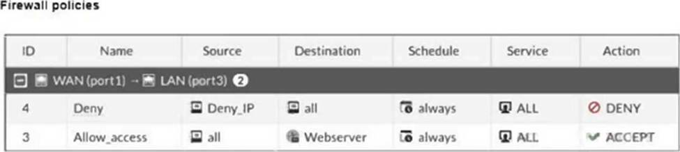 - D . Set the Destination address as Deny_IP in the Allow_access policy.