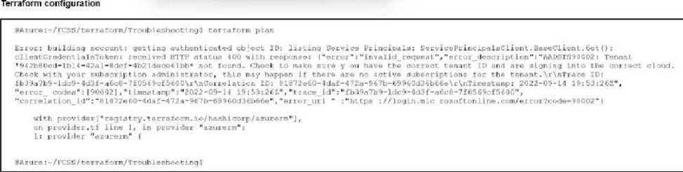 - A . The terraform plan command will deploy the rest of the resources except the service principal details.
