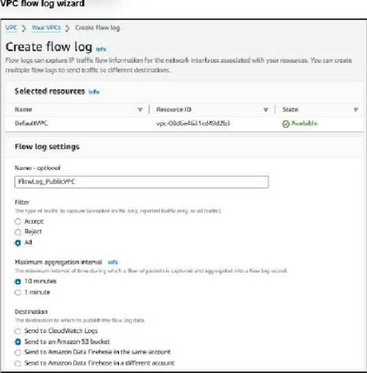An experienced AWS administrator is creating a new Virtual Private Cloud (VPC) flow log with the settings shown in the exhibit.