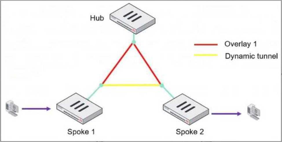 The client behind Spoke-1 generates traffic to the device located behind Spoke-2.
