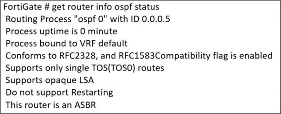 An administrator is checking the OSPF status of a FortiGate device and receives the output shown in the exhibit.