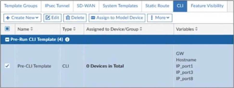 - A . The administrator did not assign the template correctly when adding the model device because pre-CLI templates remain permanently assigned to the firewall