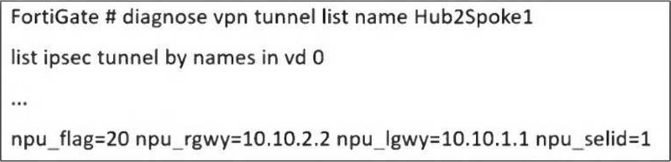 This lack of offloading typically occurs when the tunnel configuration uses a cipher (encryption algorithm) or an HMAC (authentication algorithm) that is not supported by the specific NPU model installed in the FortiGate. For example, if a tunnel is configured with a legacy or highly complex algorithm that the NP6 or NP7 chip is not designed to process in hardware, the FortiOS kernel handles the encryption and decryption, resulting in the npu_flag=20 status. Therefore, despite the presence of NPU-related fields, the specific flag value confirms that hardware acceleration is not active for these SAs.