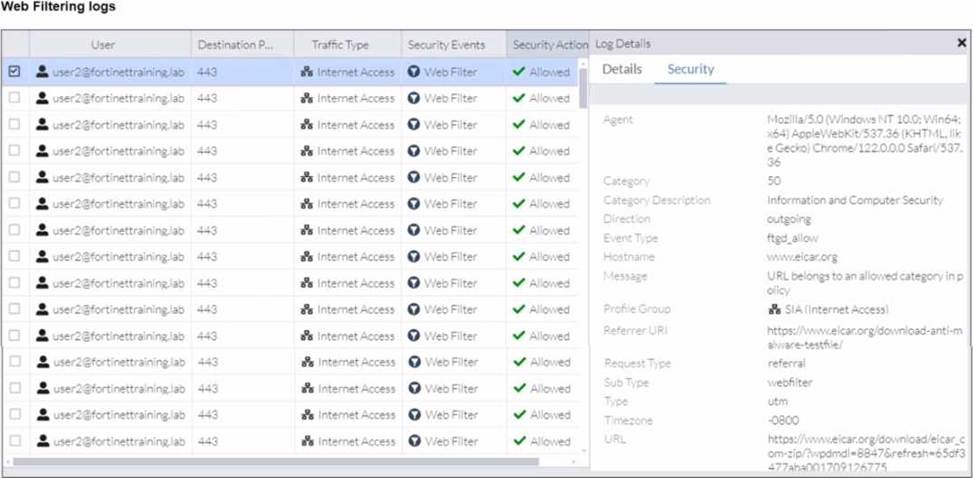 A FortiSASE administrator has configured an antivirus profile in the security profile group and applied it to the internet access policy. Remote users are still able to download the eicar.com-zip file from https://eicar.org. Traffic logs show traffic is allowed by the policy.
