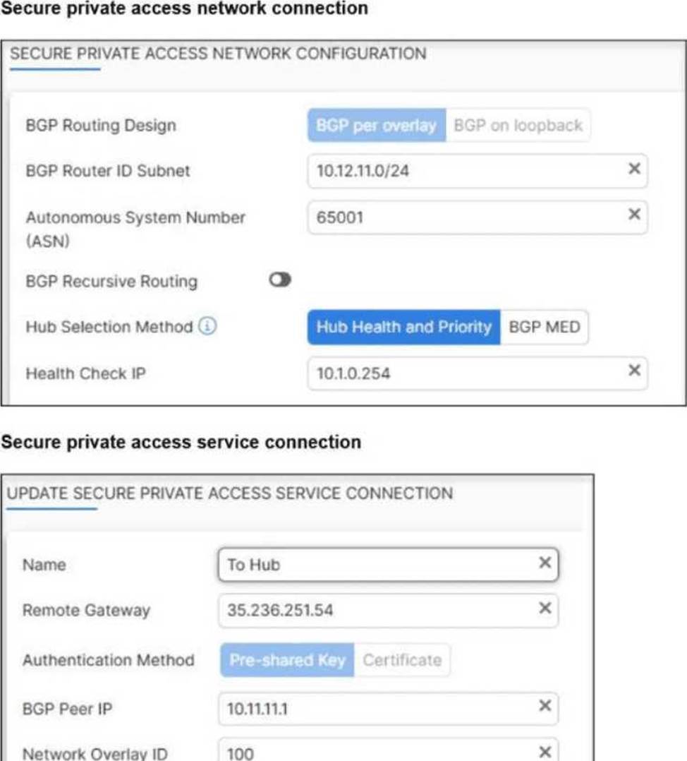 - C . The BGP router ID must match on the hub and FortiSASE.