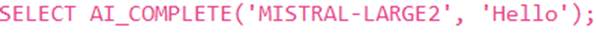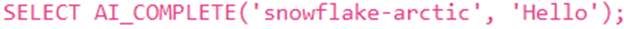 - E . The ‘SNOWFLAKE.CORTEX.TRY_COMPLETE SQL function, which is the error-tolerant version of ‘COMPLETE.
