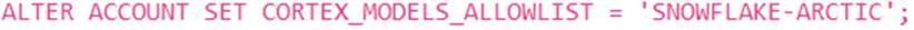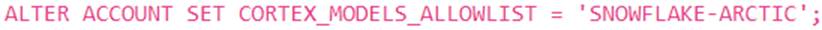 Option D is incorrect. ‘snowflake-arctic’ is neither in the ‘CORTEX MODELS ALLOWLIST nor does the user have a specific application role granting access to a ‘snowflake-arctic’ model object.