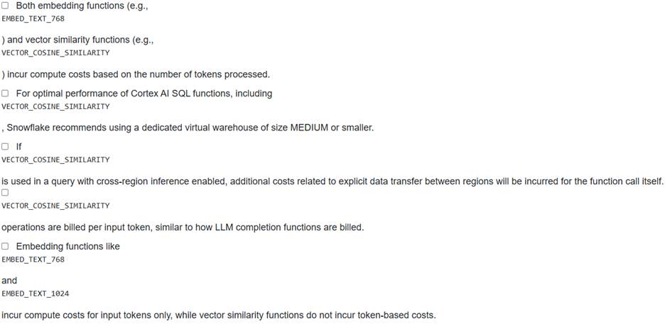 Option D is incorrect. Vector similarity functions do not incur token-based costs.