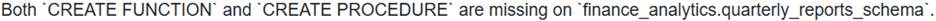 Options C and D are individual components of the correct answer, but the question asks for the ‘combination of missing schema-level privileges’ as cited in the documentation.