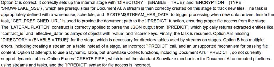 - B . Snowflake Cortex functions, including SNOWFLAKE. CORTEX.SUMMARIZE, are explicitly incompatible with dynamic tables, requiring alternative automation methods such as streams and tasks.