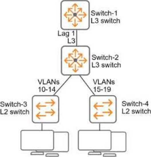 Lag 1 is the primary link between Switch-2 and Switch-1, both of which are Layer 3 switches running OSPF.