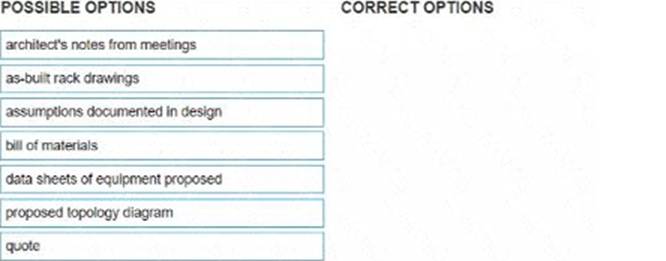What documents should be included in the solution proposal? (Place the correct items into the list at the right. Order is not important. Not all options will be used)