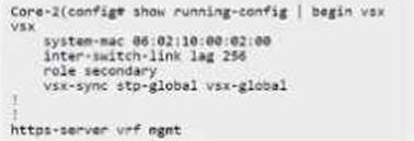 - A . On the secondary switch, add vsx-sync ip-helper under VSX configuration.