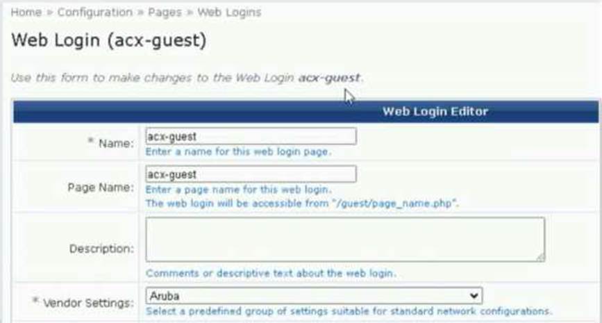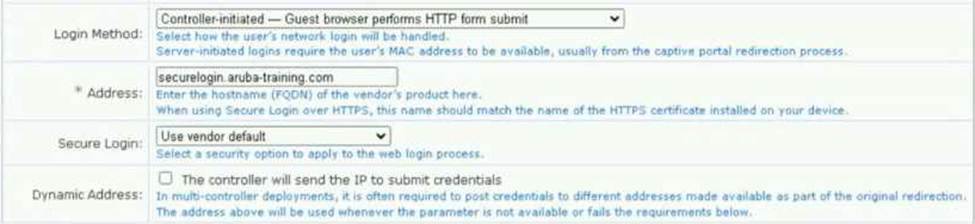 - B . captiveportal-login.aruba-training.com needs to be entered in the Address field for the ClearPass Guest