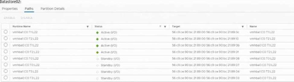 You are analyzing a customer environment with two Alletra 6000 arrays in a VMware stretched cluster. Application latency differs slightly depending on whether the VM is on Datastore01 or Datastore02.