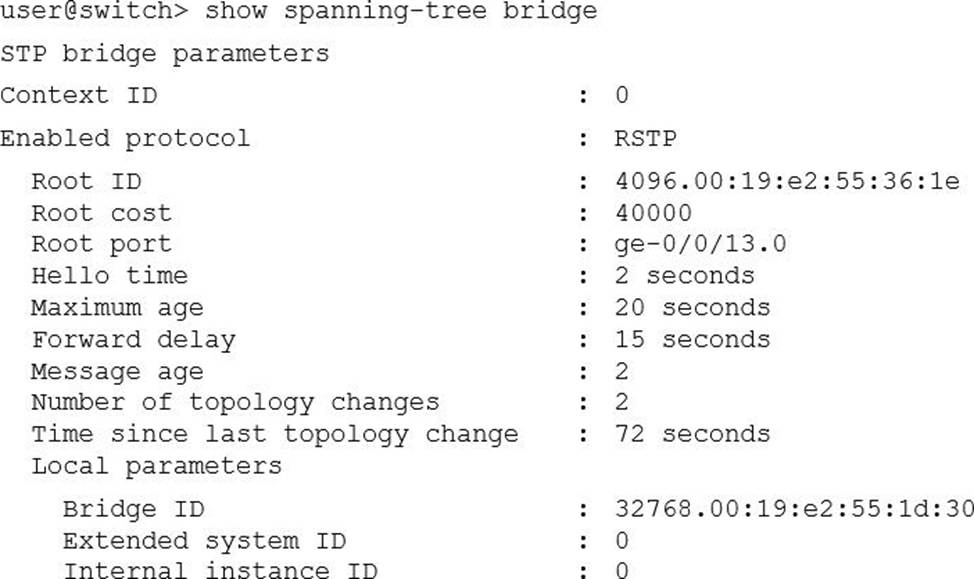 - A . The local device is using a bridge priority of 4k.