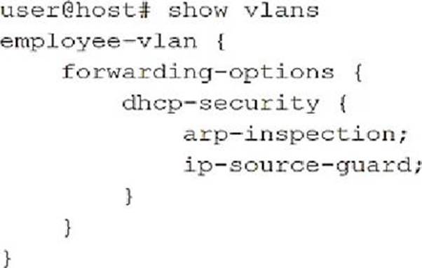 - A . The IP source guard is enabled.