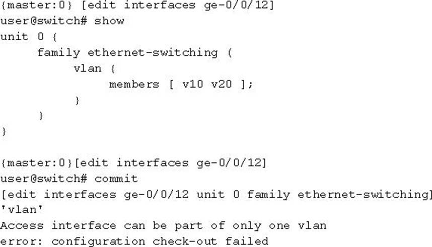When trying to commit the configuration shown in the exhibit, you receive an error.