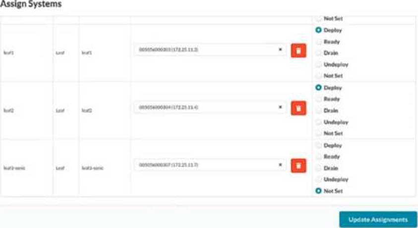 By contrast, Ready is commonly used when you want the device discovered and prepared (for example, basic identity and interface readiness), but not actively routing in the fabric. Drain is a maintenance state used to gracefully withdraw an already-deployed device from forwarding to minimize impact (for example, for upgrades or repairs). Not Set indicates the deploy mode has not been chosen and therefore does not represent an operationally complete participation state.
