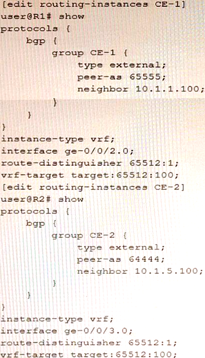 - C . The route-distinguisher configuration will allow overlapping routes to be shared between CE-1 and CE-2.