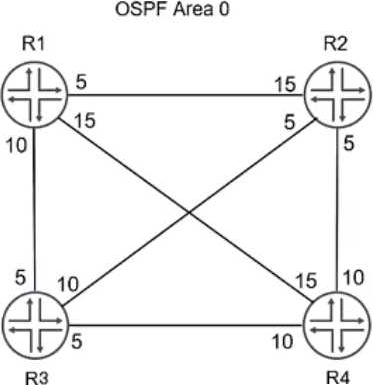Referring to the exhibit, which path would traffic passing through R1 take to get to R4?