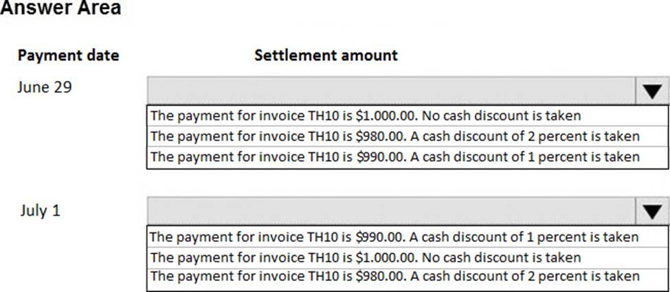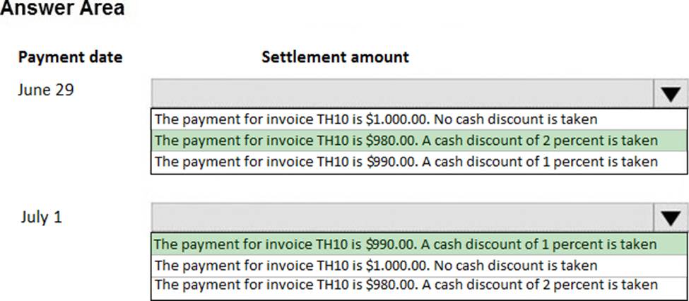 A company sells goods to a customer. You enter an invoice for the customer on June 25. The invoice is eligible for a cash discount of two percent if it is paid in five days and a discount of one percent if it is paid in 14 days.