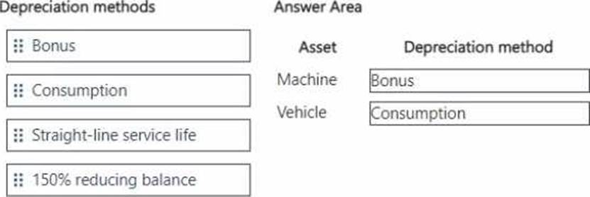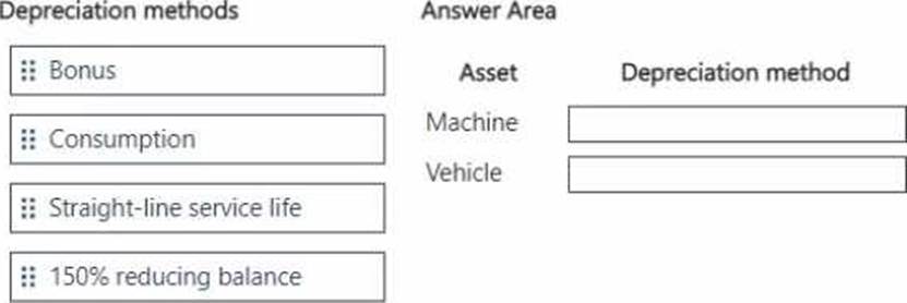 Which depreciation method should you use? To answer, drag the appropriate depreciation methods to the correct assets. Each method may be used once, more than once, or not at all. You may need to drag the split bar between panes or scroll to view content. NOTE: Each correct selection is worth one point.