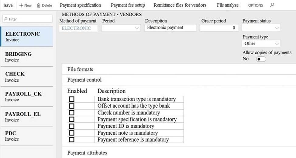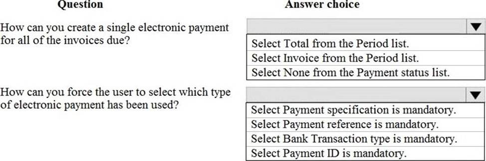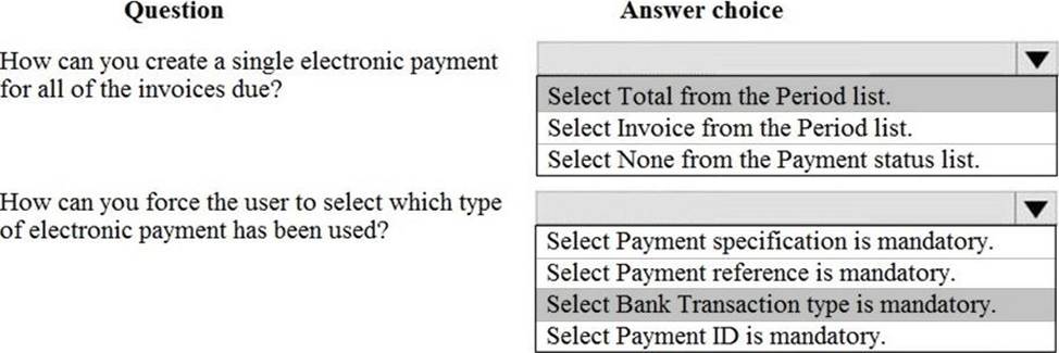 A client needs to configure Accounts payment vendor methods of payment to meet the following business requirements: