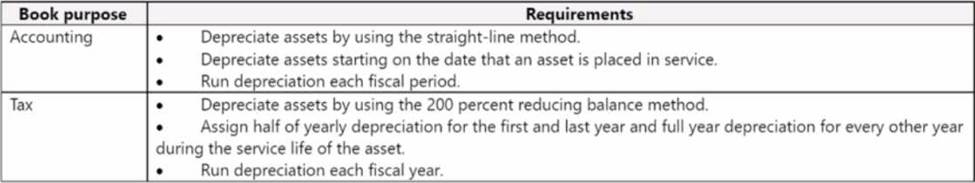 A company uses Dynamics 365 Finance to manage fixed assets. The company’s fiscal year is set as the calendar year.