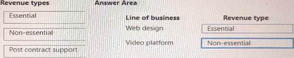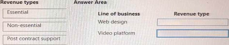 Which revenue type is associated with the line of business? To answer, drag the appropriate revenue types to the correct lines of business. Each revenue type may be used once, more than once, or not at all. You may need to drag the split bar between panes or scroll to view content. NOTE: Each correct selection is worth one point.