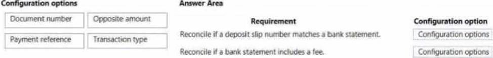 A customer implements Dynamics 365 Finance You need to configure bank reconciliation settings.