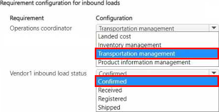 You need to configure the requirements for the operations coordinator and the inbound load for Vendor!