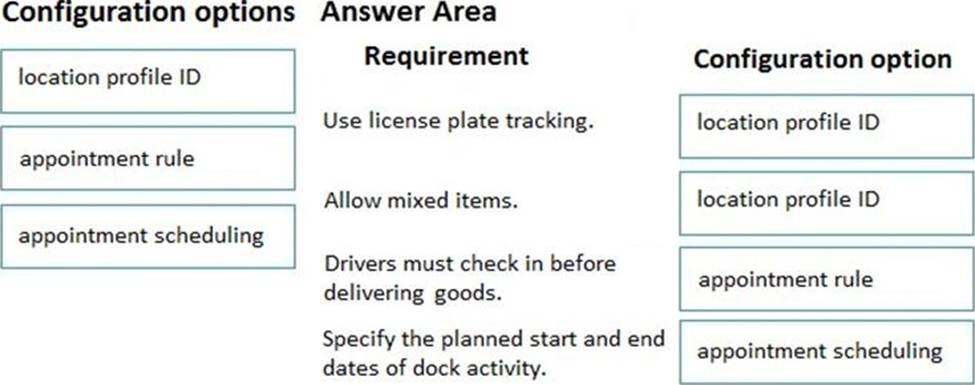 A company plans to use warehouse management and dock appointment scheduling in Dynamics 365 for Finance and Operations.