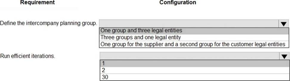 One legal entity supplies the other two legal entities as customers with inventory. Intercompany master planning must be set up and run in the least amount of time.