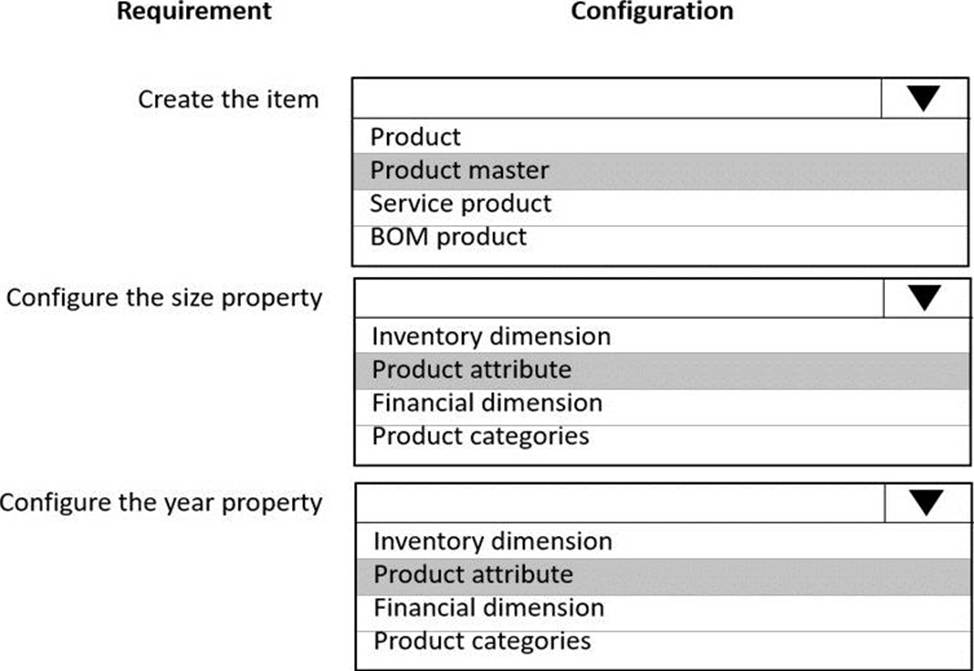 The following manufactured bicycles’ properties must be configured in Dynamics 365 Supply Chain Management: