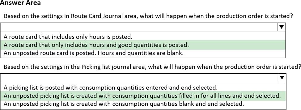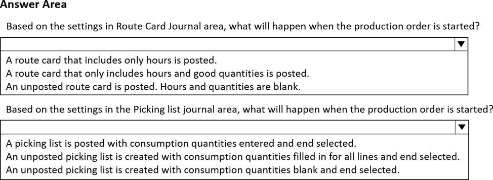 • The production manager needs to set up picking list journals and BOM item consumption.