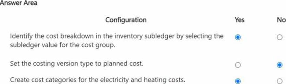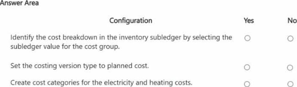 How should you complete the costing sheet configuration? To answer, select the appropriate options in the answer area. NOTE: Each correct selection is worth one point.